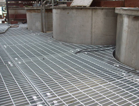 污水廠用鋼格板   污水處理廠用鋼格柵其特點為:   1、強(qiáng)度高:牢固的網(wǎng)格壓焊結(jié)構(gòu)使其具有高承載;   2、結(jié)構(gòu)輕:便于吊裝等特點;   3、外形美觀,經(jīng)久耐用:熱浸鋅表面處理使其具有相當(dāng)好的防腐能力,表面光澤美觀; ···